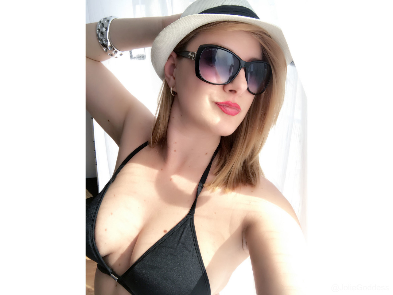 Amateur blonde goddess Jolie teases in skintight black lingerie, skyscraper heels, and glasses—posing perfect ass and bikini selfies for ultimate solo babe fantasy.