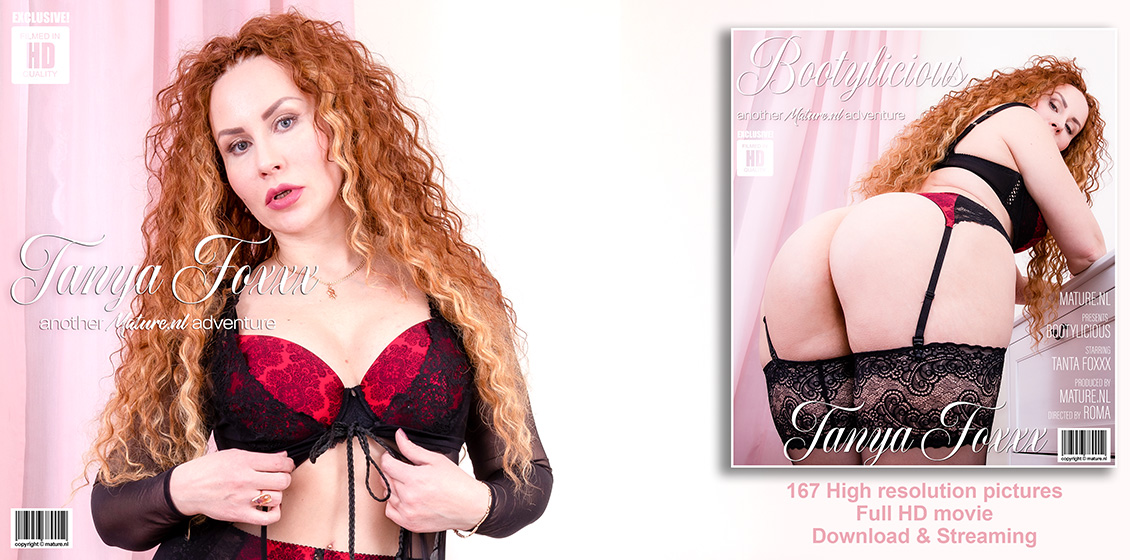 Mature redhead Tanya Foxxx strips from lingerie to stockings, flaunting her PAWG curves, big tits and shaved pussy in this nude MILF debut gallery.