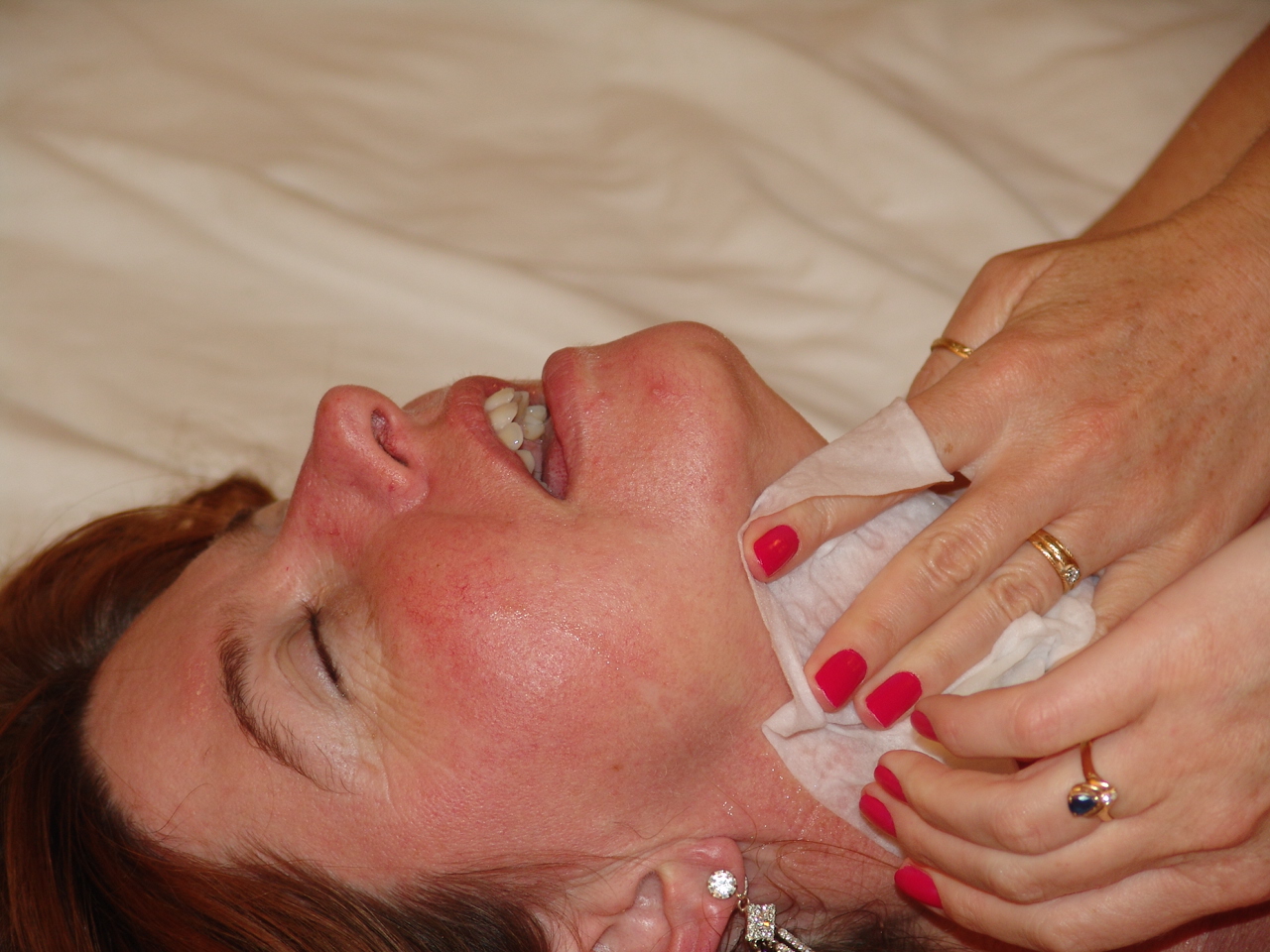 Redheaded Tracy Lick joins her buddy for wild IR gangbang—mature redhead with tiny tits gives blowjobs, gets shaved pussy pounded, and takes cumshots in hot amateur groupsex action.