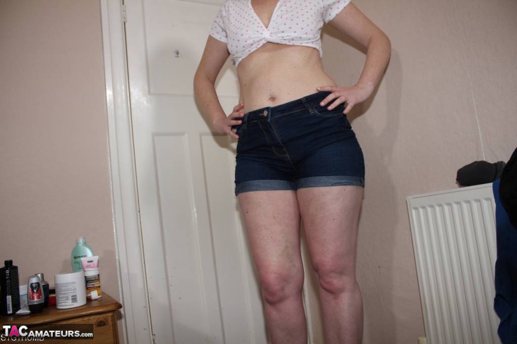 Blonde British MILF Tracey Lain gives a steamy bedroom blowjob in tight jeans and panties, teasing nipples in amateur POV before her first-time anal debut.