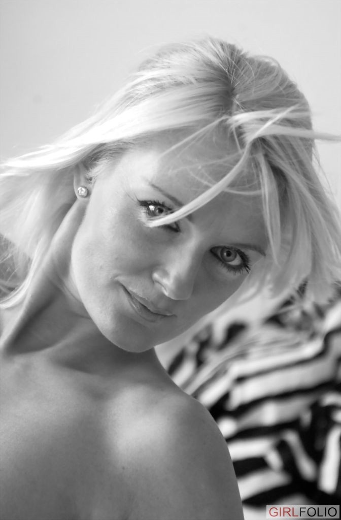 Sexy blonde MILF Jayne Connery teases with perfect natural big tits, slipping off panties in close-up glamour shots.