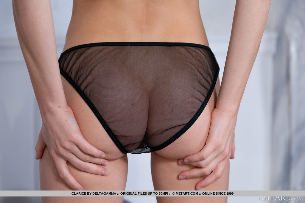 Teen Clarice With Red Lips Removes Sheer Lingerie To Pose Nude