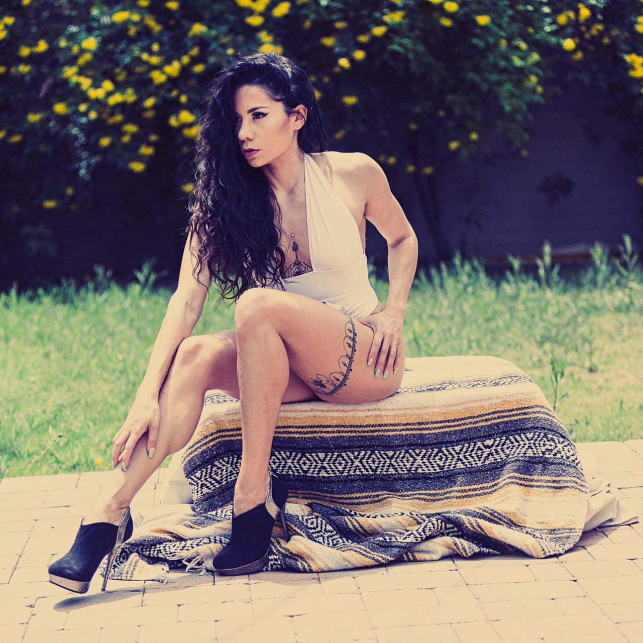 Brunette Inked Milf Kara Dasha Poses In Stunning White Bodysuit Outdoors - Gallery Information