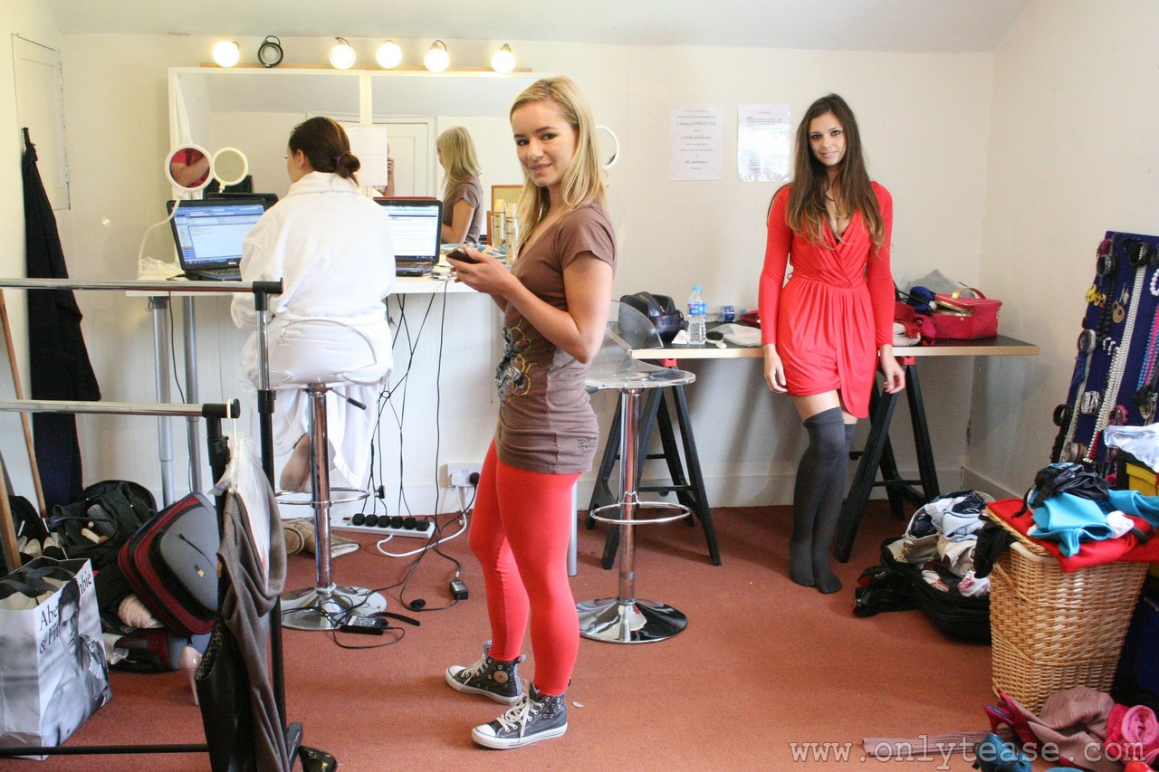 Carla Brown and Melanie Walsh tease in sheer stockings, flashing long legs, perfect feet and tight bodies in behind-the-scenes solo glam—non-nude, ultra-hot Only Tease fantasy.