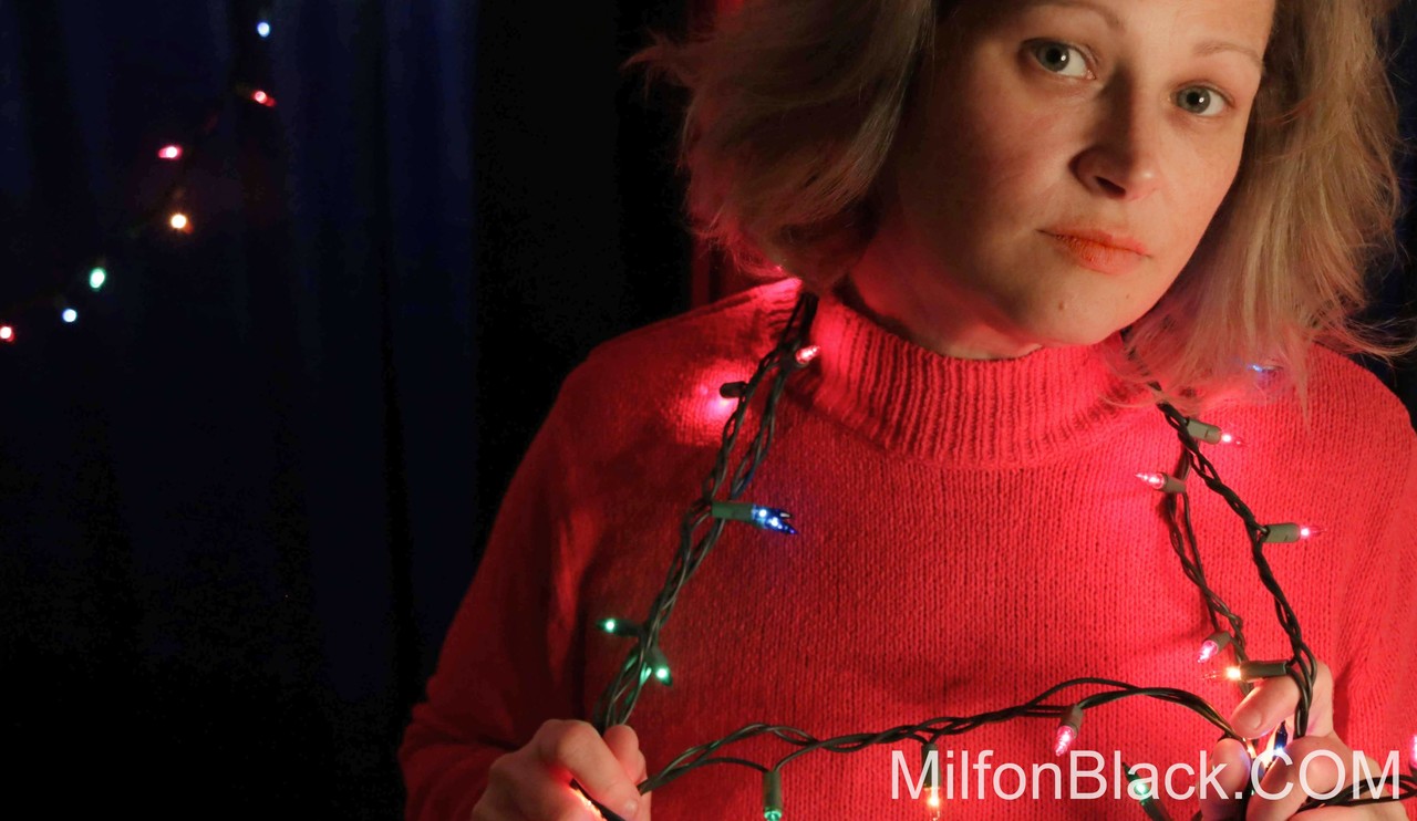 Cute Chubby Amateur Milf Poses In Her Sexy Outfit Under Xmas Lights