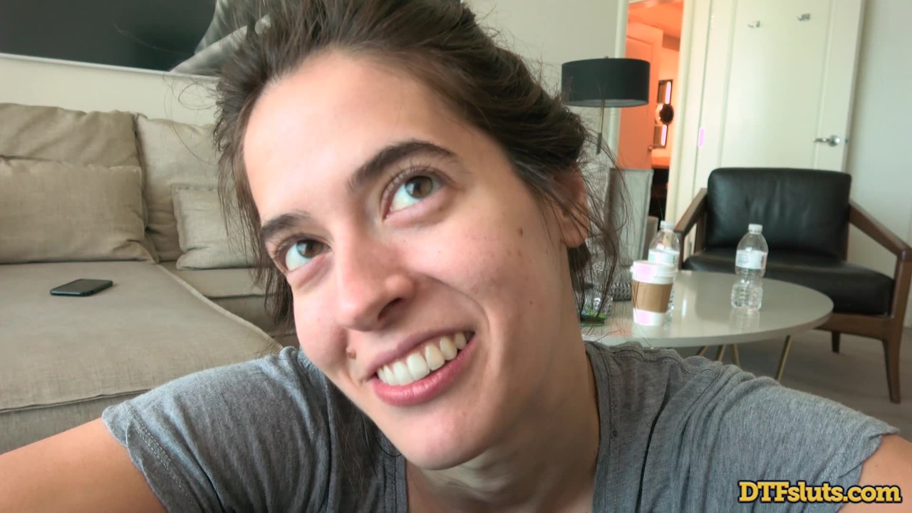 POV blowjob from sock-and-sneaker brunette PAWG, worships monster cock, licks ass, takes hard reality fuck, tiny tits cum-face finale.