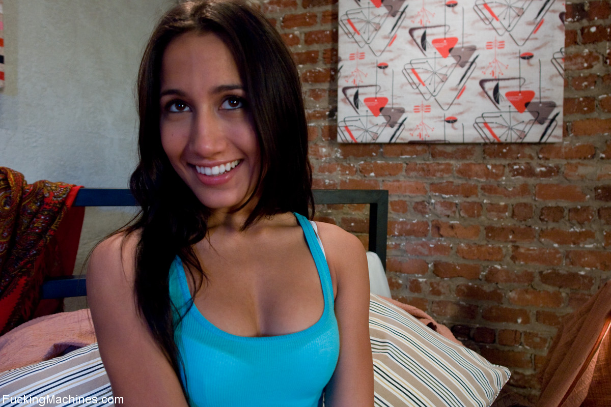 Amia Moretti naked, bound and drilled by relentless fucking machines in up-close BDSM bondage, skinny brunette stuffing her perfect pussy with dildo, soaked panties, raw masturbation climax.
