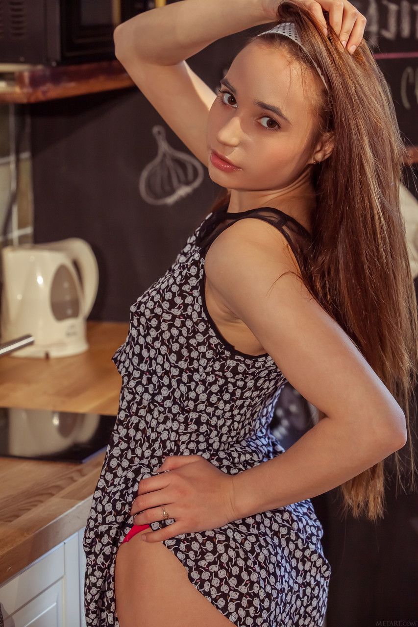 Met Art’s Messiah strips to flaunt a perfect petite teen body: tight white panties tease upskirt, slim legs open to reveal a beautiful bare pussy and round ass—glamour erotica for lovers of hot naked girls.