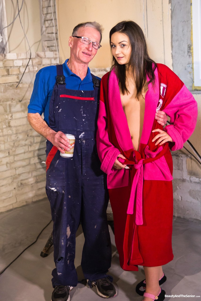 Petite Hungarian teen Anina Silk seduces older handyman with her cute brunette charm and wonderful tits, enjoying passionate old-young pounding.