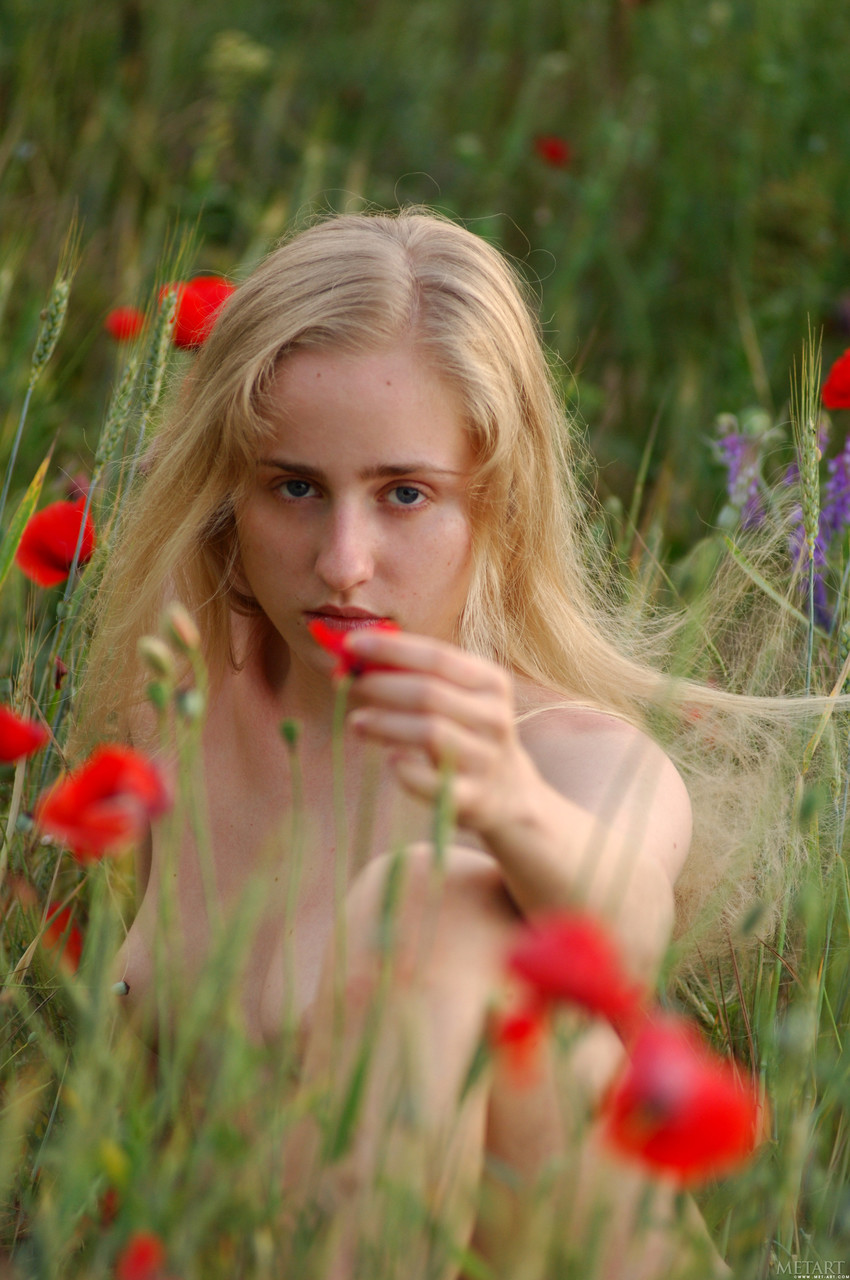 Pale blonde European teen Vera E strips outdoors, spreading shaved pussy in glamour shoot for Met Art. Petite blonde babe flaunts skinny body and natural teen pussy.