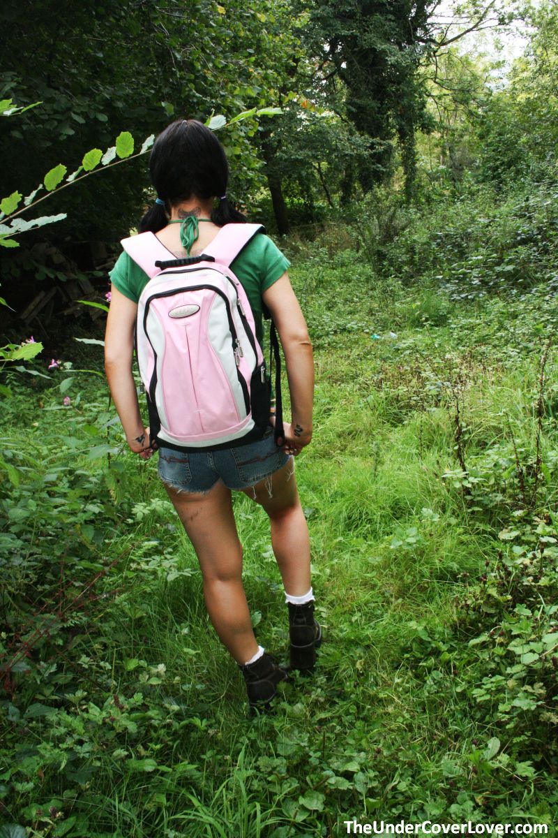 Dark-haired MILF Elizabeth Lawrence dons pigtails and shorts for outdoor interracial ass-fucking amid greenery, deepthroating BBC in mature 69 before doggy-style climax