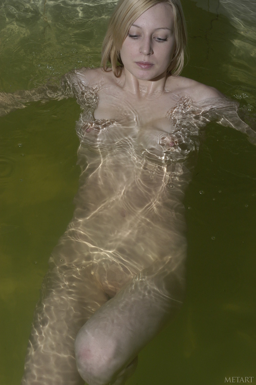 Blonde teen Narkiss flaunts big wet tits and erect nipples in a glamorous poolside solo, showcasing her beautiful ass and cute armpits in Met Art’s erotic nude gallery.