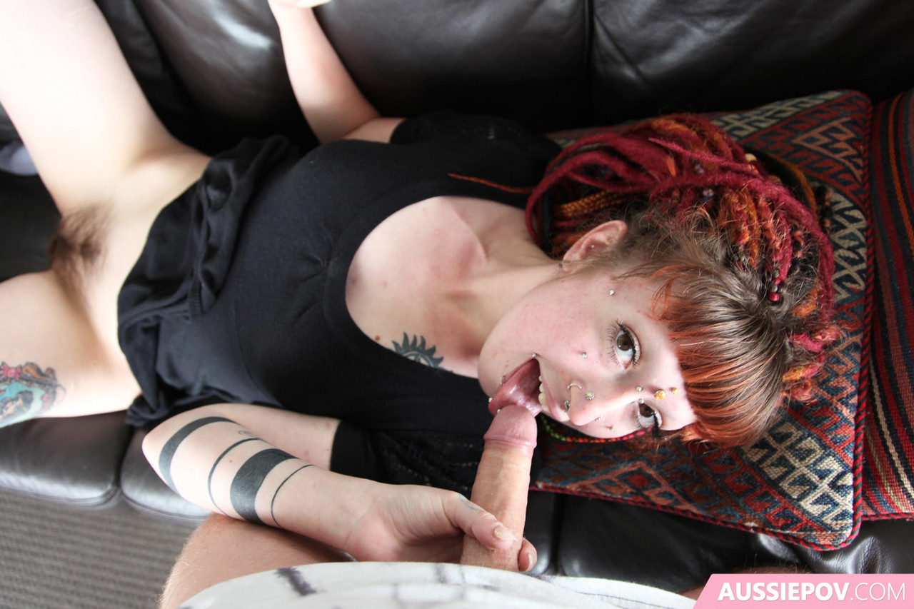 Pierced redhead Daisy Adair flaunts her big butt in raw POV action—hairy teen pussy, doggystyle, amateur heat, tattooed inked skin, tight ass fucking, redhead goddess.
