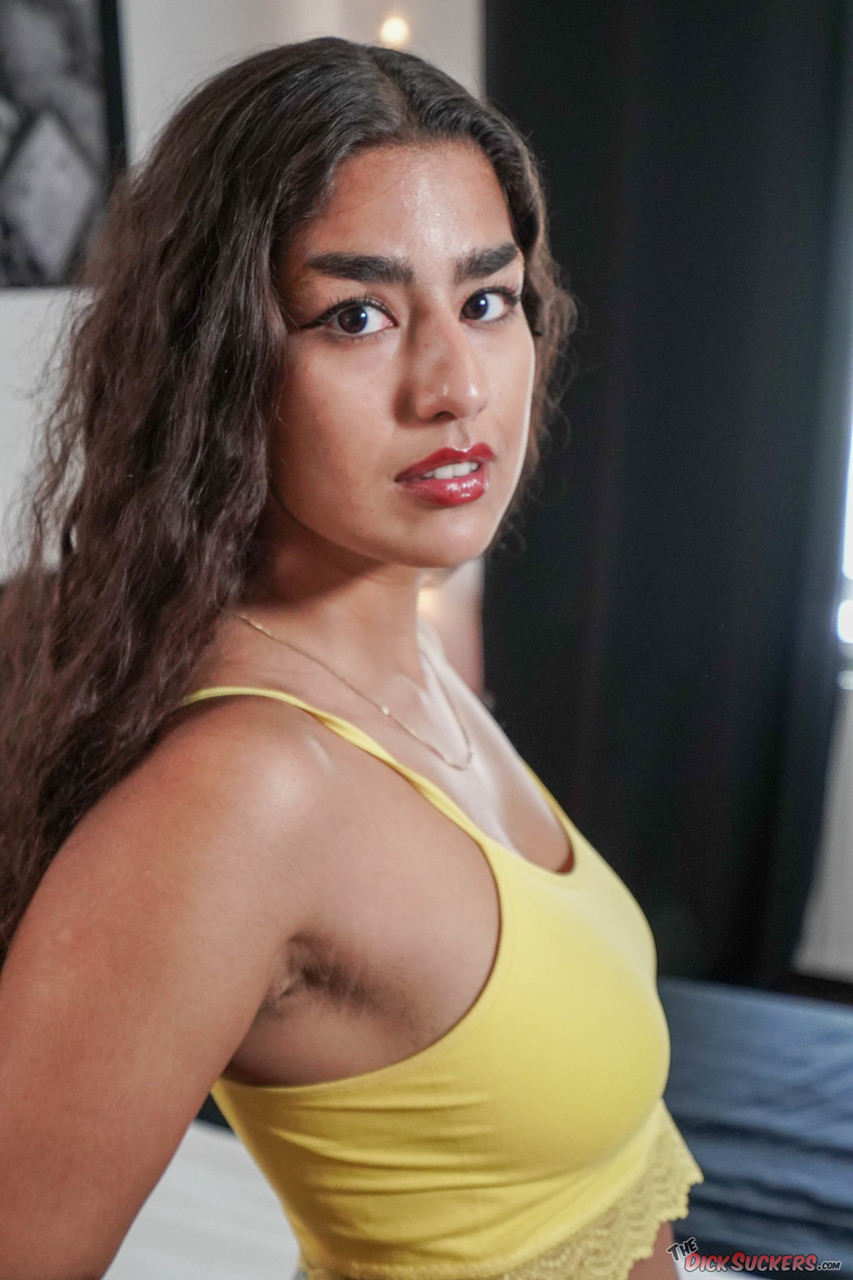 Wavy-haired Muslim babe in tiny shorts strips, teases her tight pussy and gets stretched by monster POV cock in hijab reality scene.