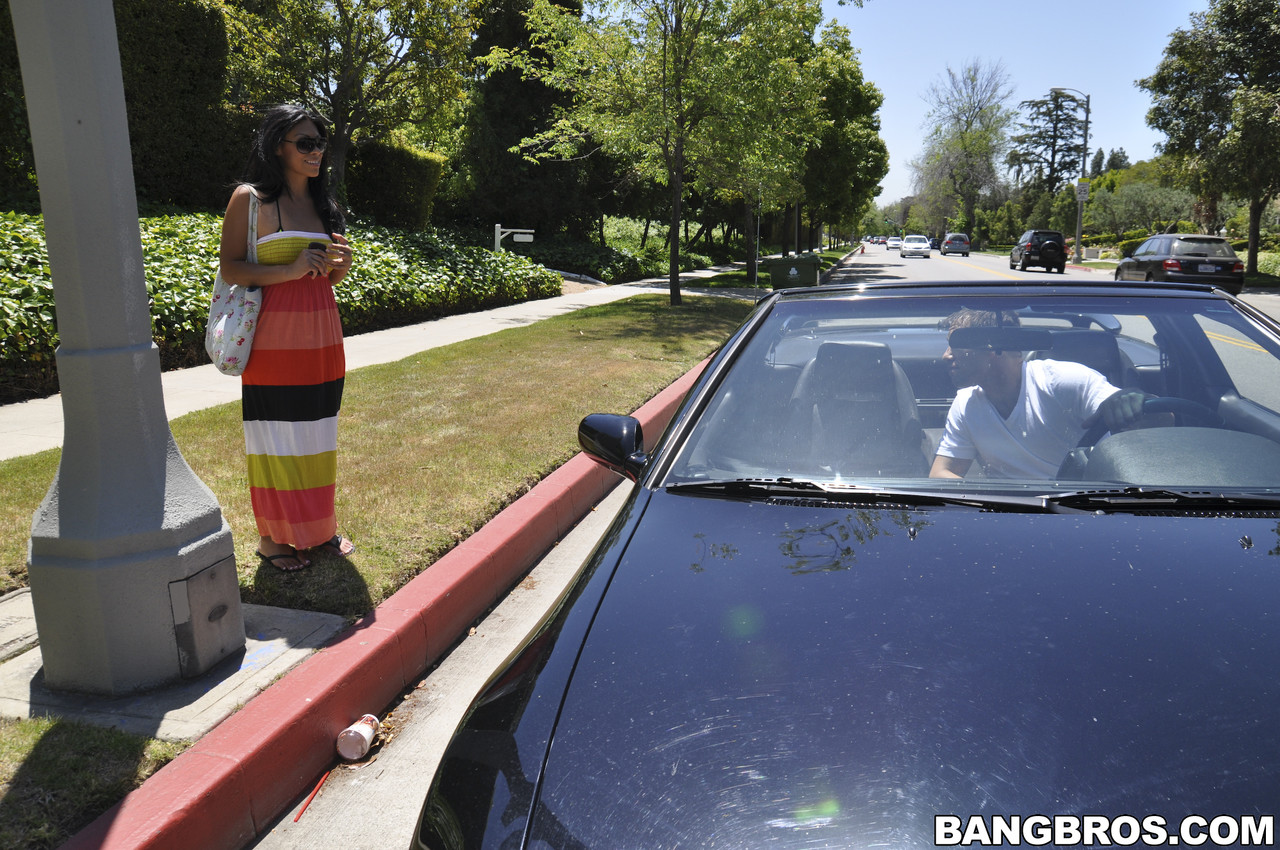Bikini Latina MILF Cassandra Cruz sucks huge boner and gets shaved clam pounded hard outdoors in steamy hardcore porn scene.