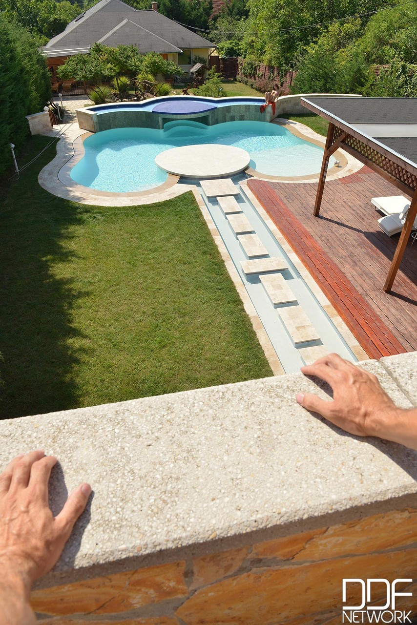 Susy Gala de microbiquini adora um pau grande à beira da piscina, dá um boquete profundo POV babado e lambe as bolas, seus peitinhos falsos ressaltam enquanto ela se engasga e faz ahegaos ao ar livre.