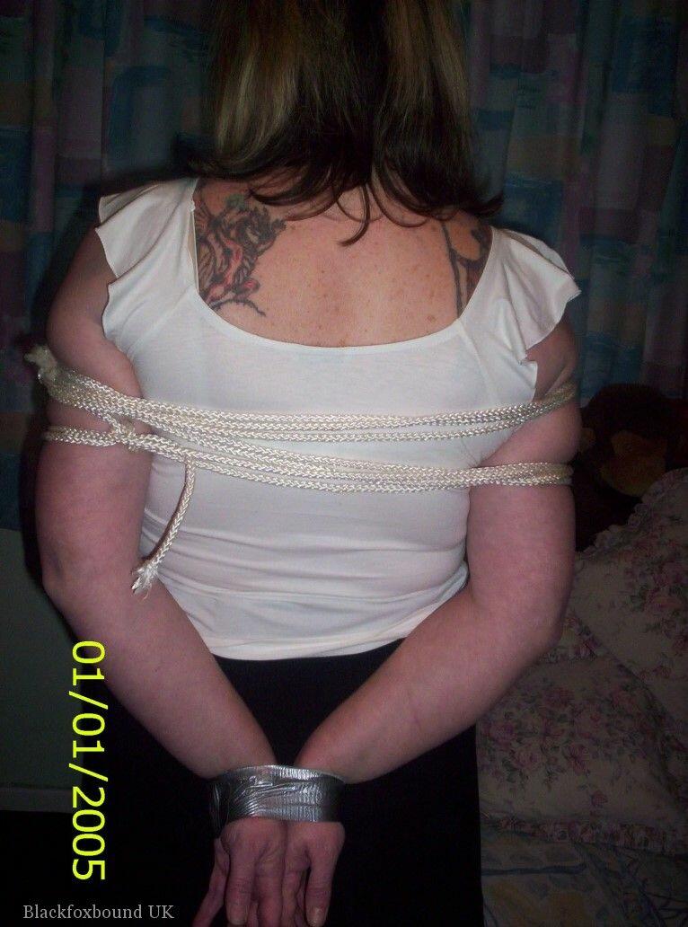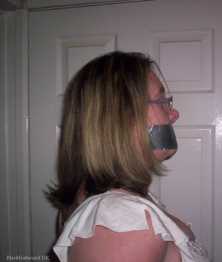 Mulher Caucasiana Amordaçada Com Seios Naturais Amarrada Com Corda - Informações da Galeria