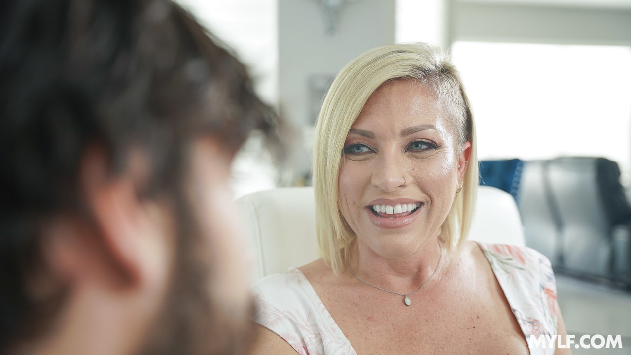 A loira madura Kyla Keys faz provocações em lingerie, devora o pênis, monta com força e engole o sêmen em uma cena de realidade MILF proibida.