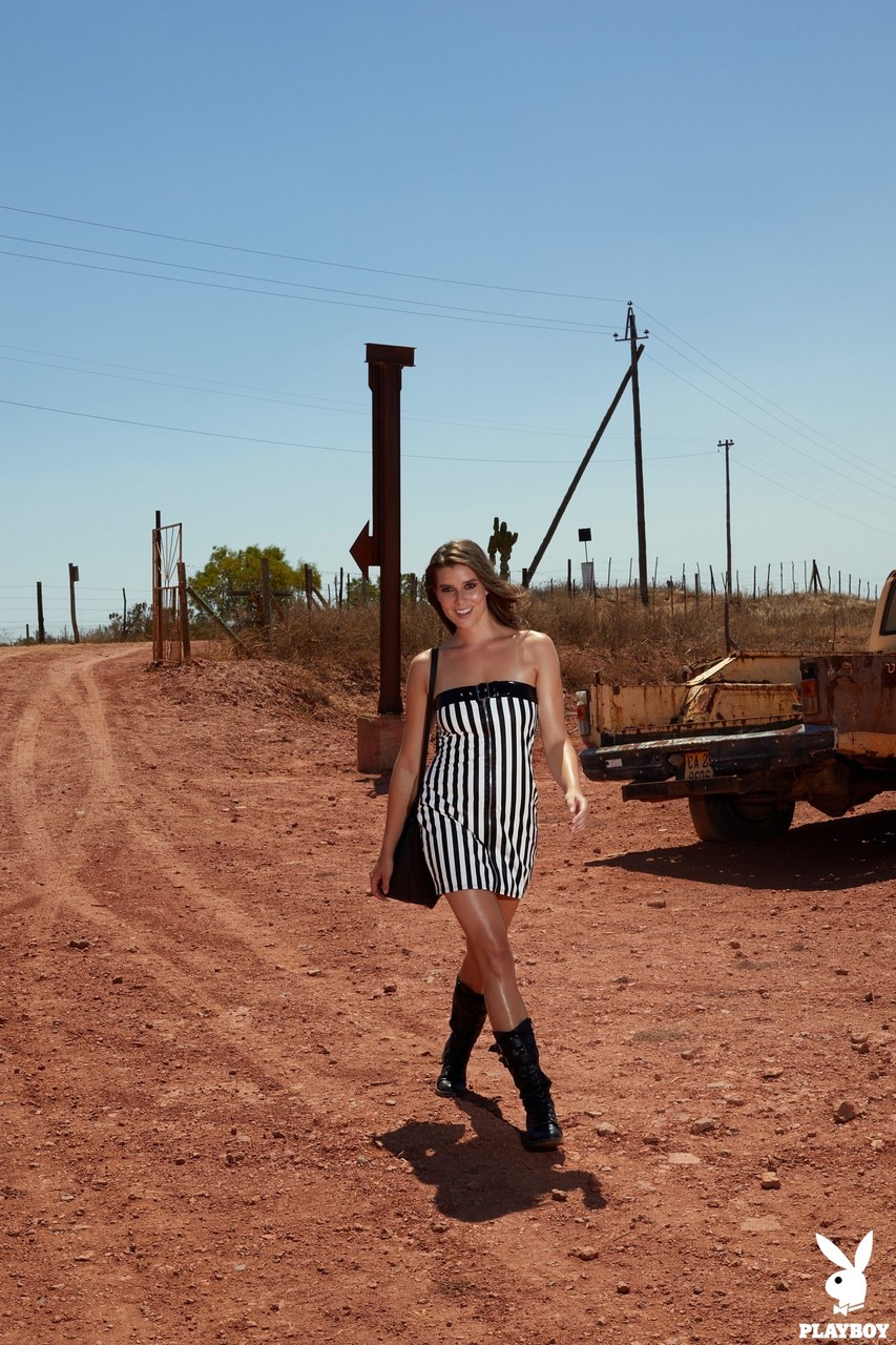 A gata alemã Nina Zwick esquenta o deserto, expondo seios incríveis e um traseiro doce em uma sessão de fotos de centerfold - a modelo de glamour adolescente exibe uma boceta fofa, uma beleza de cabelo curto sob o céu aberto.