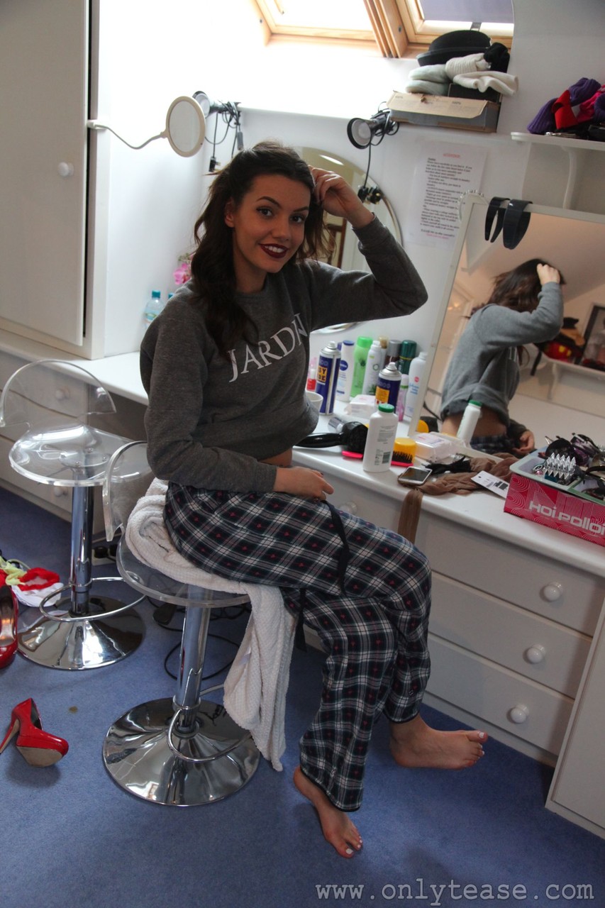 A sensual Abigail B se mostra provocante em uma sessão de solo softcore nos bastidores, exibindo pernas cruzadas, pés perfeitos e curvas lindas não nuas para fãs de mulheres comuns.