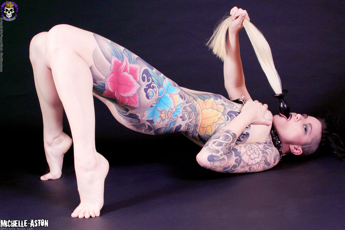 A Tatuada Michelle Aston Pluga A Própria Bunda E Depois Coloca Um Consolo De Rosto - Informações da Galeria
