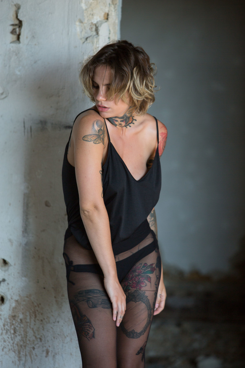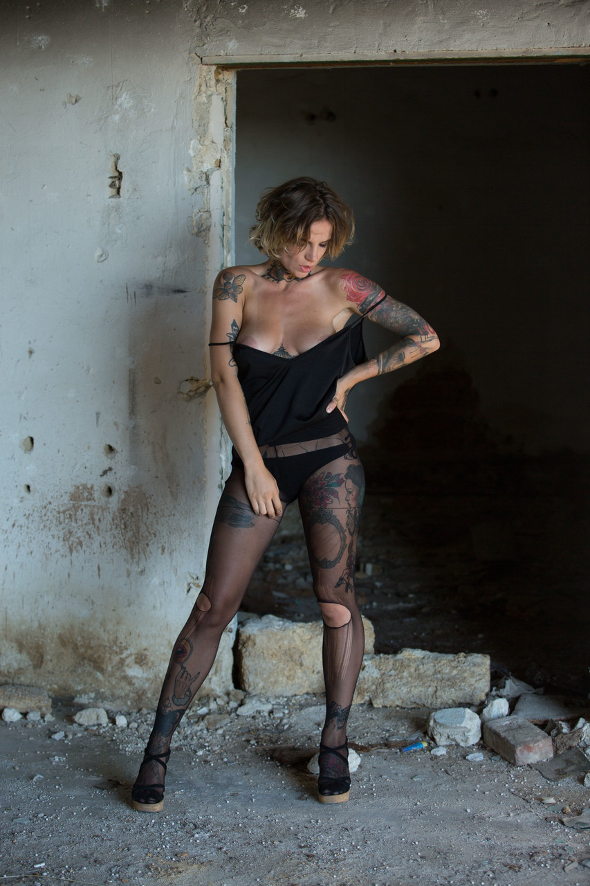 A adolescente tatuada Stacy Cloud tira as meias para mostrar seus grandes lábios da xoxota, seus grandes seios tatuados e suas pernas longas em uma sessão de provocação erótica solo e glamorosa.