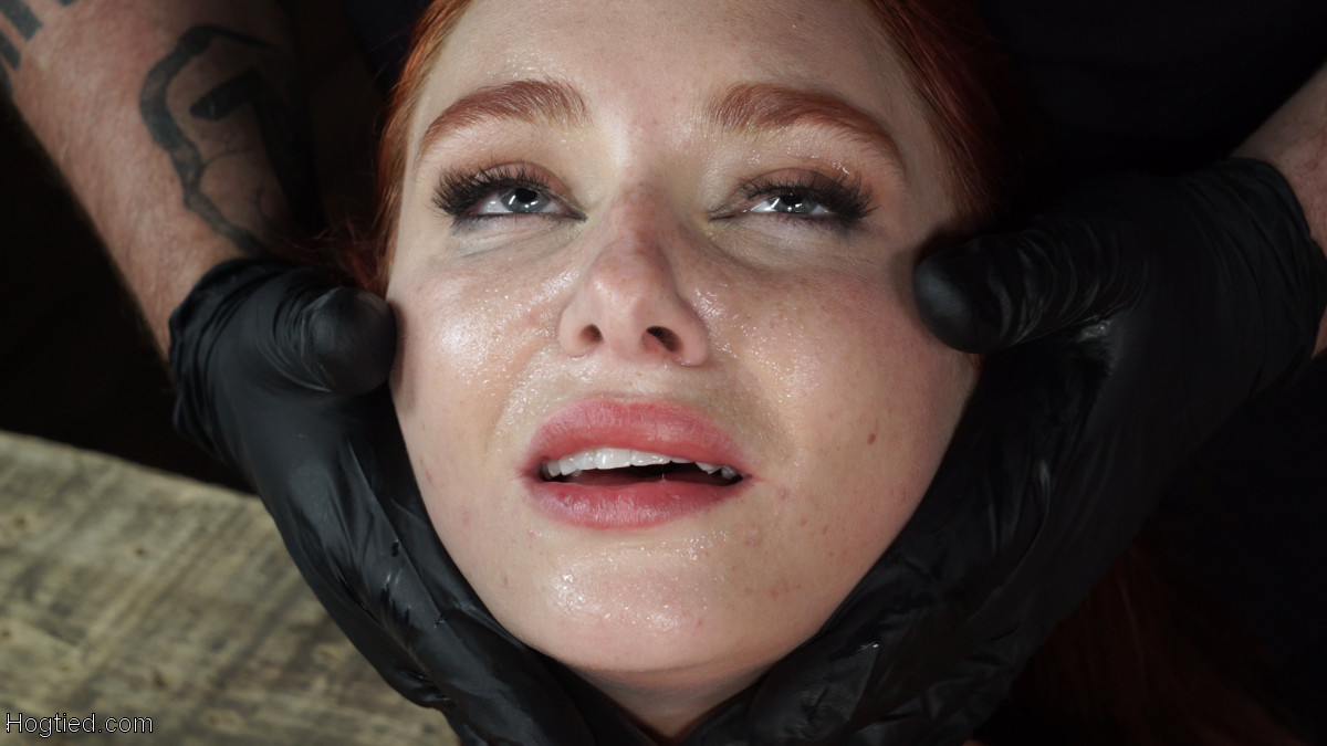 Tied-up redhead teen Lacey Lennon gets toyed and fingered in hot BDSM bondage action, showing off her pale skin, freckles and blue eyes up close.