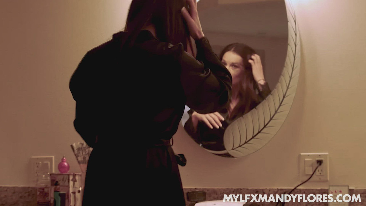 Busty MILF Mandy Flores teases in lingerie, masturbates, then mounts her lover’s hard dick in steamy POV reality action.