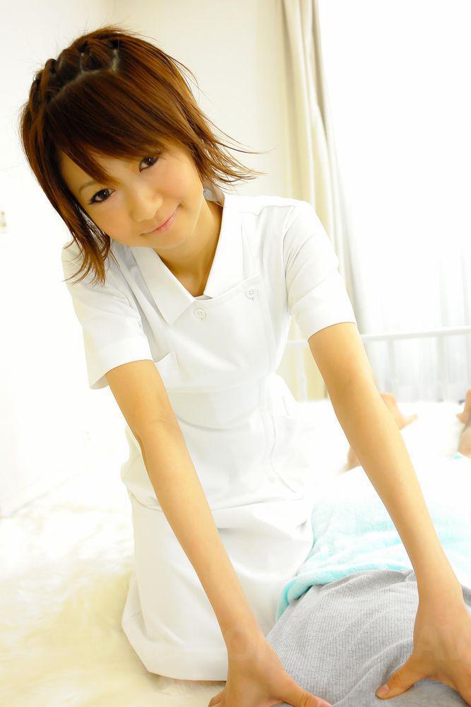 Japanese nurse Miriya Hazuki teases her patient with skilled hands and soft licks, ending in a creamy facial.