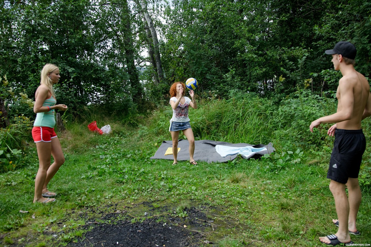 Euro redhead teens Melissa H and Alice K share wild outdoor doggystyle threesome, cute natural tiny tits, clothed blowjob, PAWG asshole, nudist cumshot.