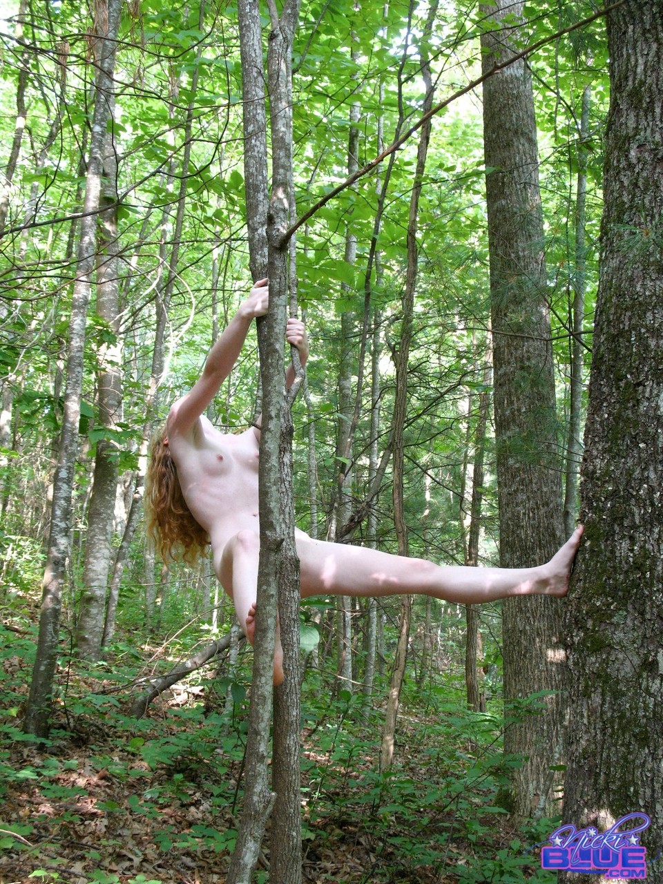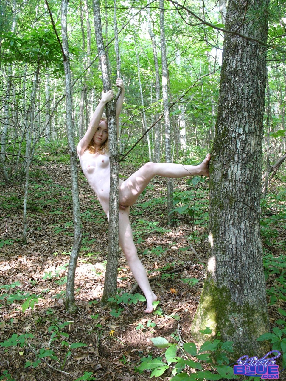Petite blonde Nicki Blue strips nude in the forest, teasing her tiny tits, tight ass and shaved pussy for an amateur outdoor solo show.