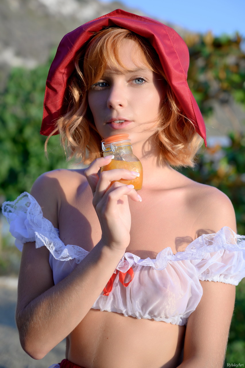 Petite curly redhead Marta Gromova flaunts teen cosplay lingerie outdoors, teasing in costume with small tits and short hair—non-nude but irresistible.