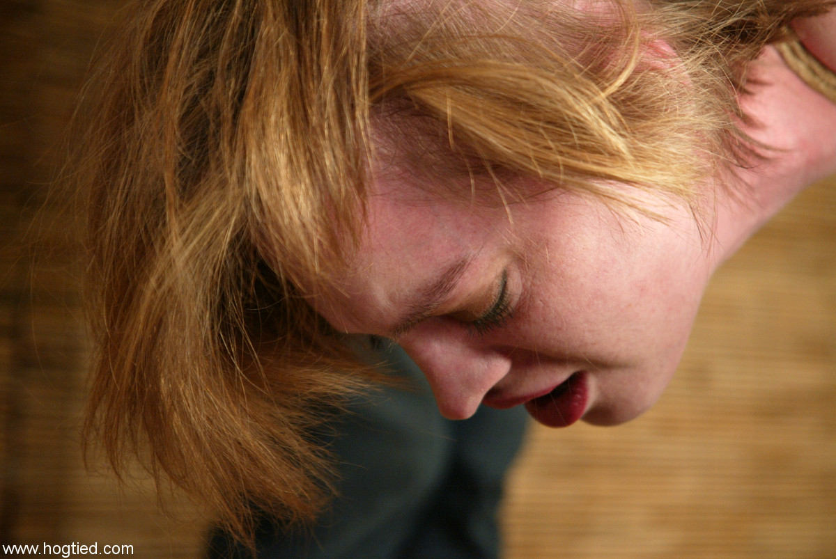 Submissive redhead Tracey Hilton bound and tormented by dominant master in intense BDSM bondage session, showcasing her PAWG ass and sensitive nipples