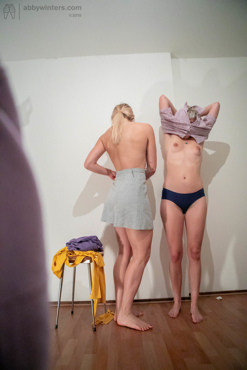 Блондинка Элин и Мэли пойманы в пылком лесбийском раздевании, демонстрируя волосатые киски и крошечные сиськи, французски целуясь в горячей любительской тин-reality.