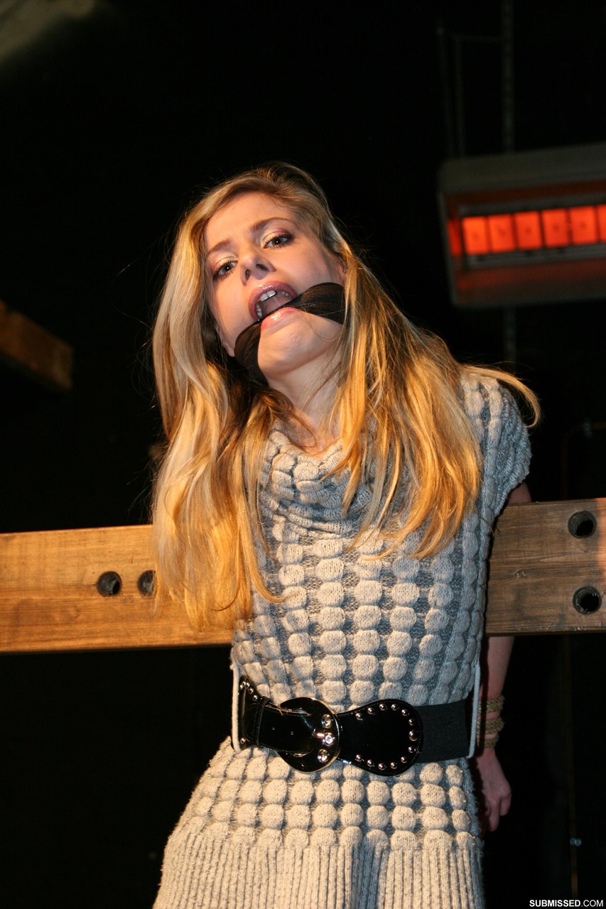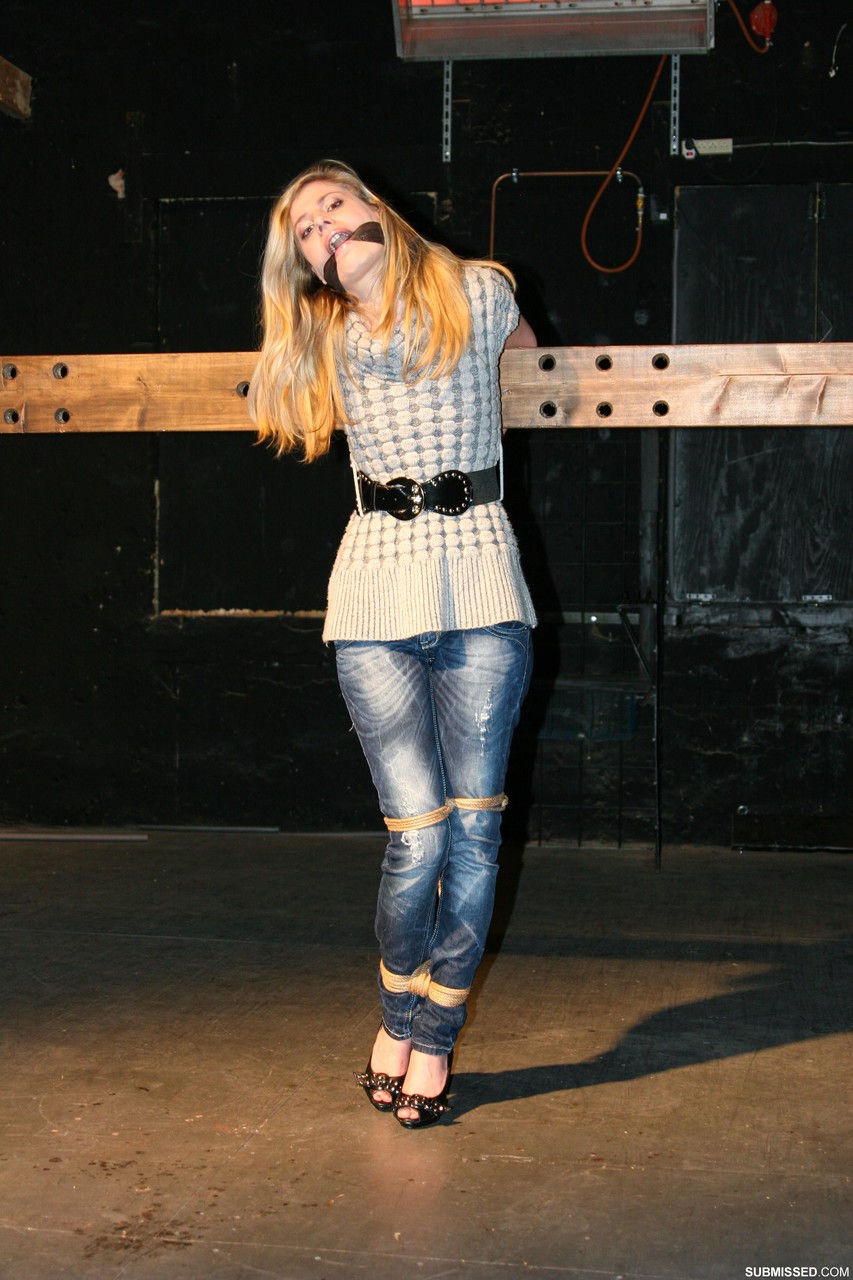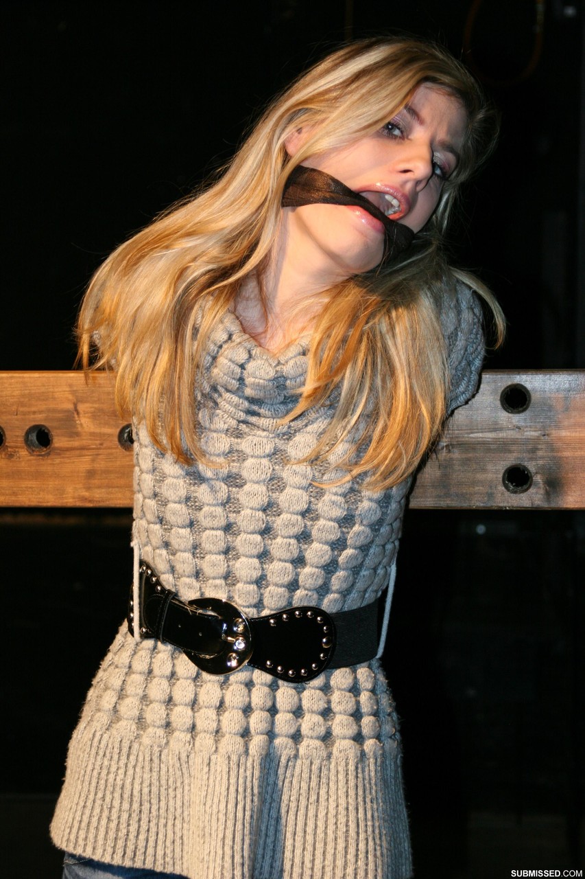 Симпатичная Блондинка Борется Против Кляпа И Веревок В Одежде - Информация о Галерее