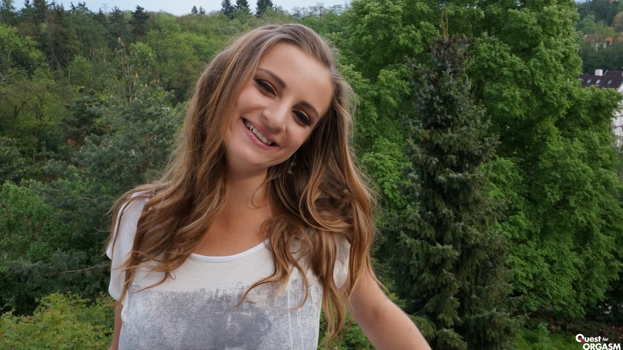 Грудастая европейская брюнетка Сьюзи Сан, загорелая на солнце на улице, широко раздвигает ноги, глубоко засовывая стеклянный фаллоимитатор в мокрую киску, одновременно мяча свои большие натуральные сиськи, стонущая, как похотливая соседка.