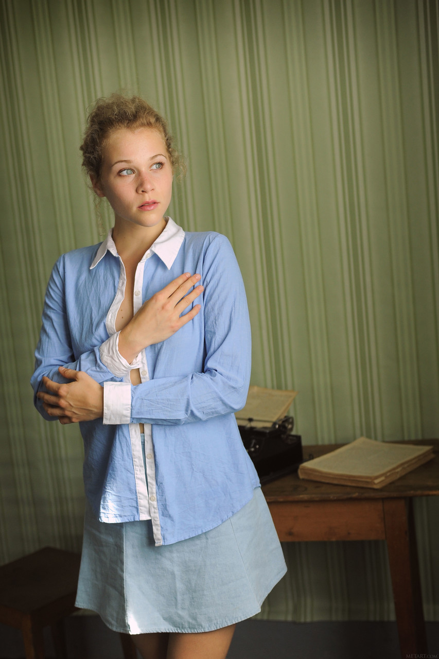 Немецкая подростка Елена полностью раздевается, показывая маленькие сиськи и идеальную попу, поднимая юбку.