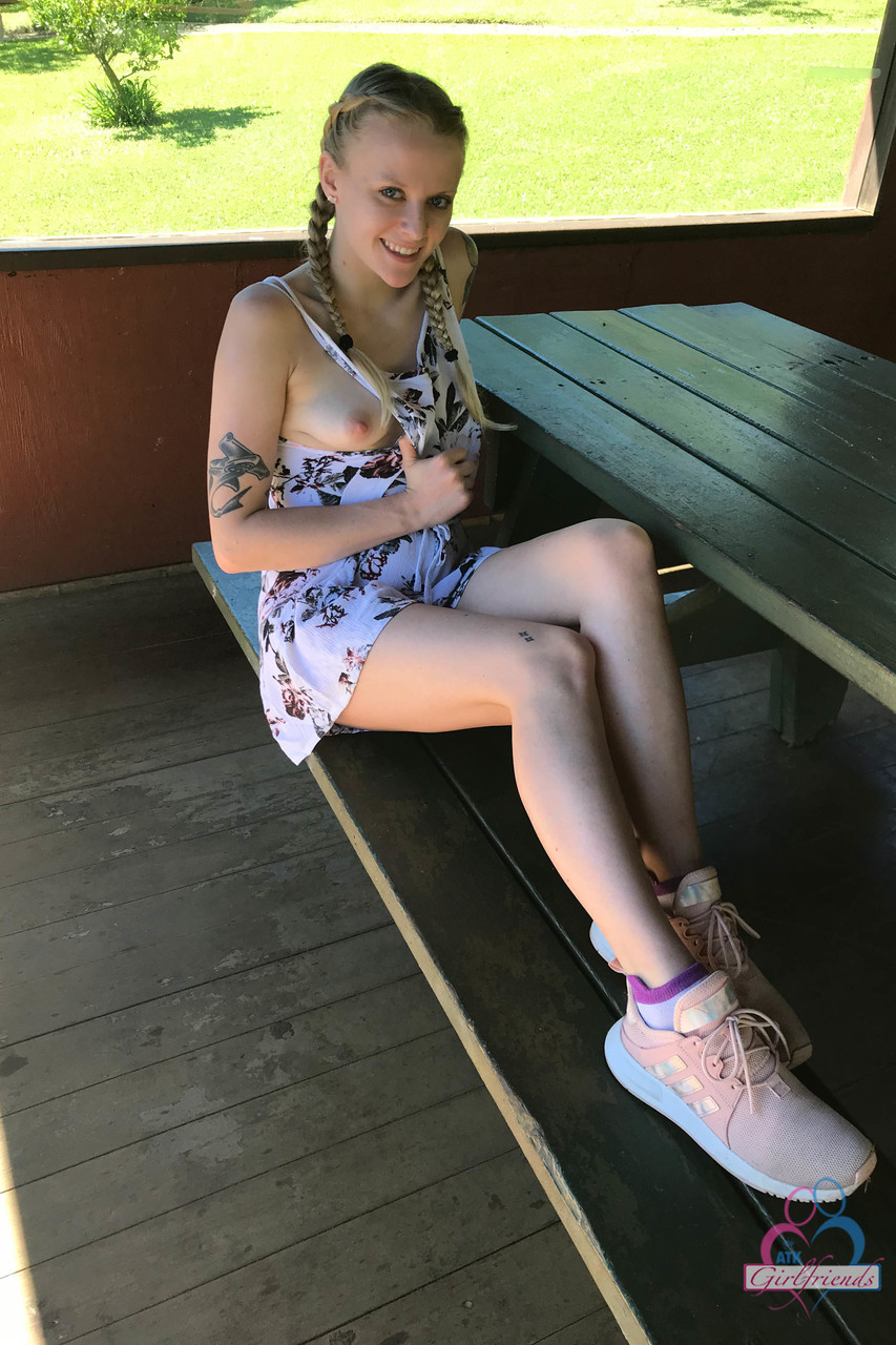 Нердовая, маленькая блондинка Парижская Белая дразнит в очках и тесной одежде на отдыхе, демонстрируя свои милые ноги и худую попку на открытом воздухе в любительских фотографиях девушки XXX.