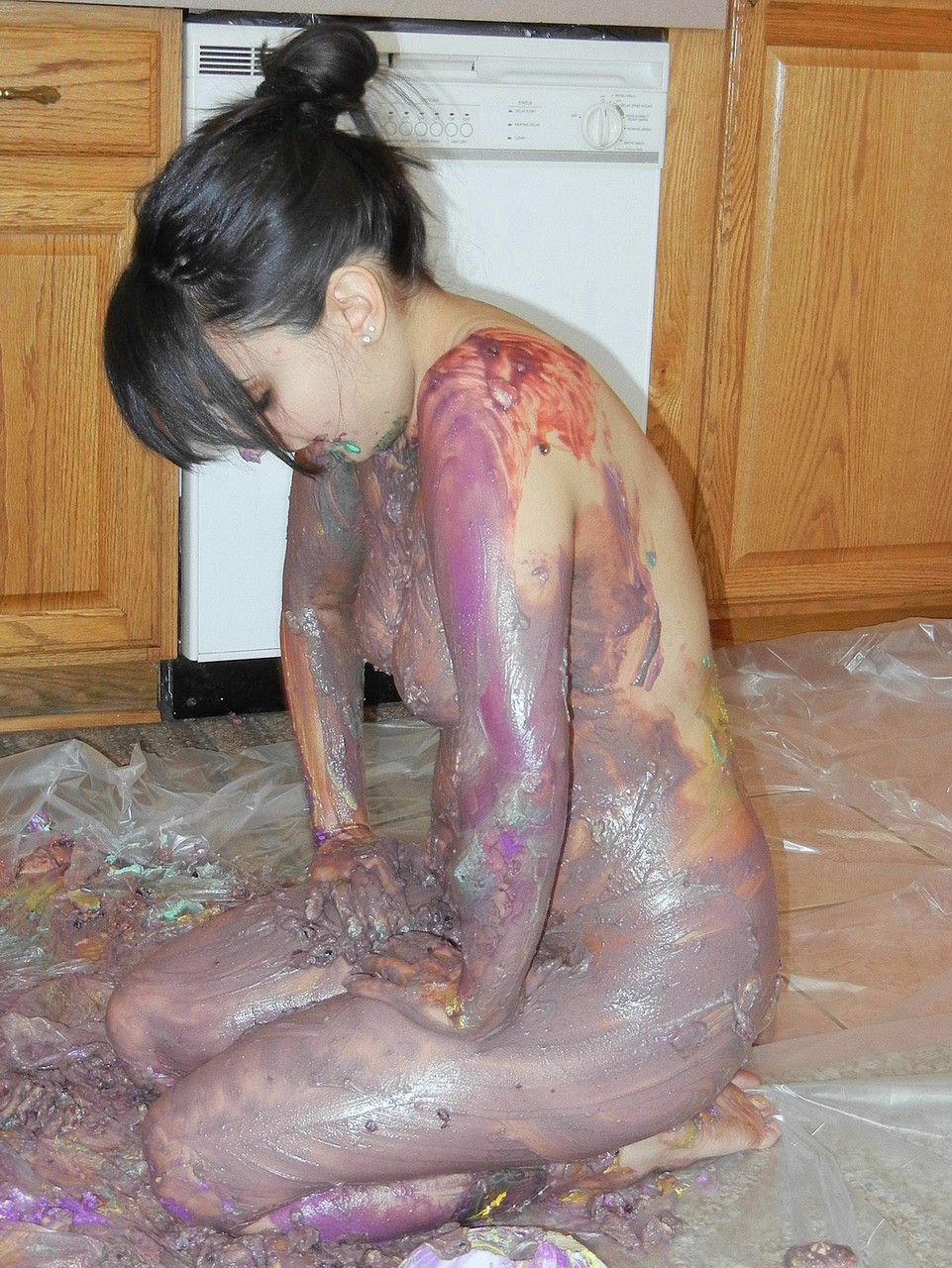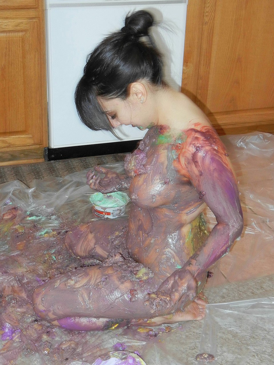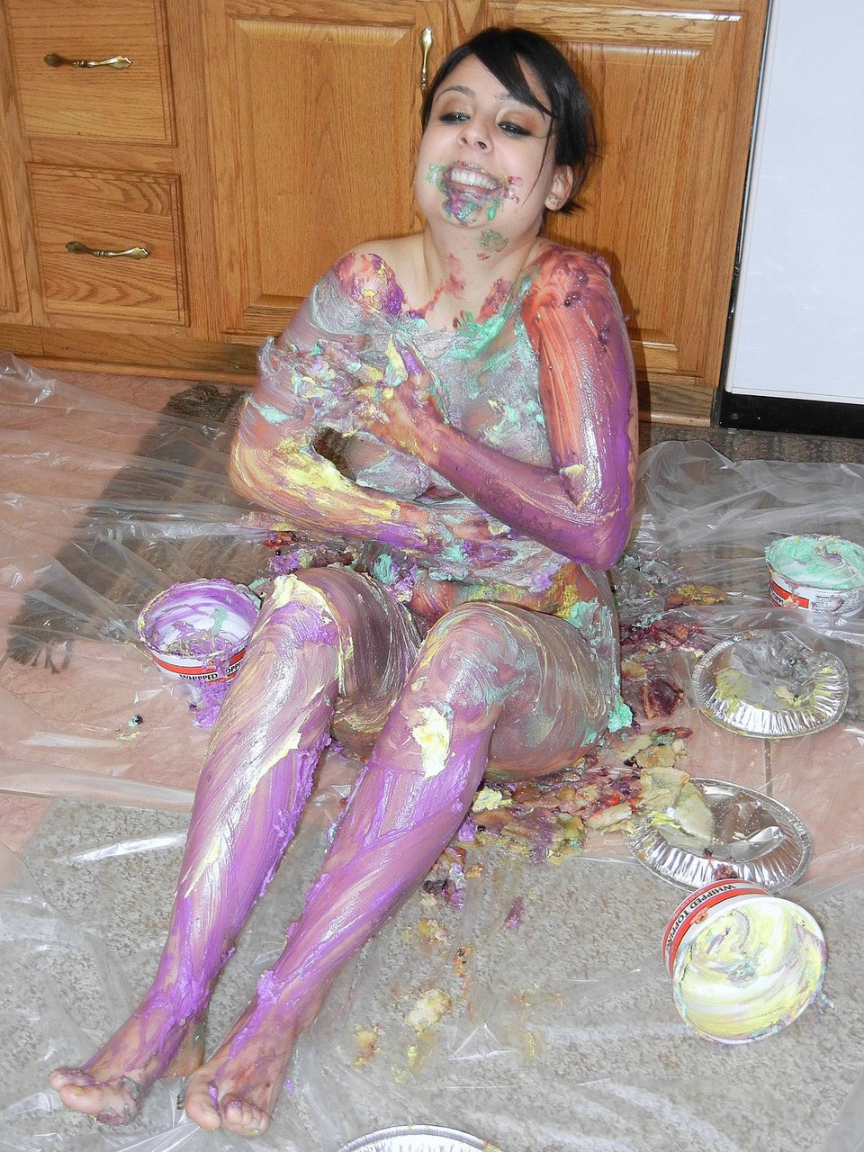 Смотрите, как Кристал Кортес, потрясающая обнаженная латиноамериканская MILF, размазывает крем в пошлой кулинарной игре соло, дразня естественной грудью и идеальной задницей.