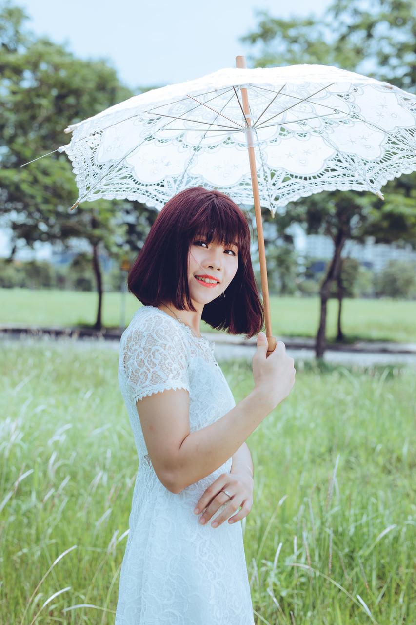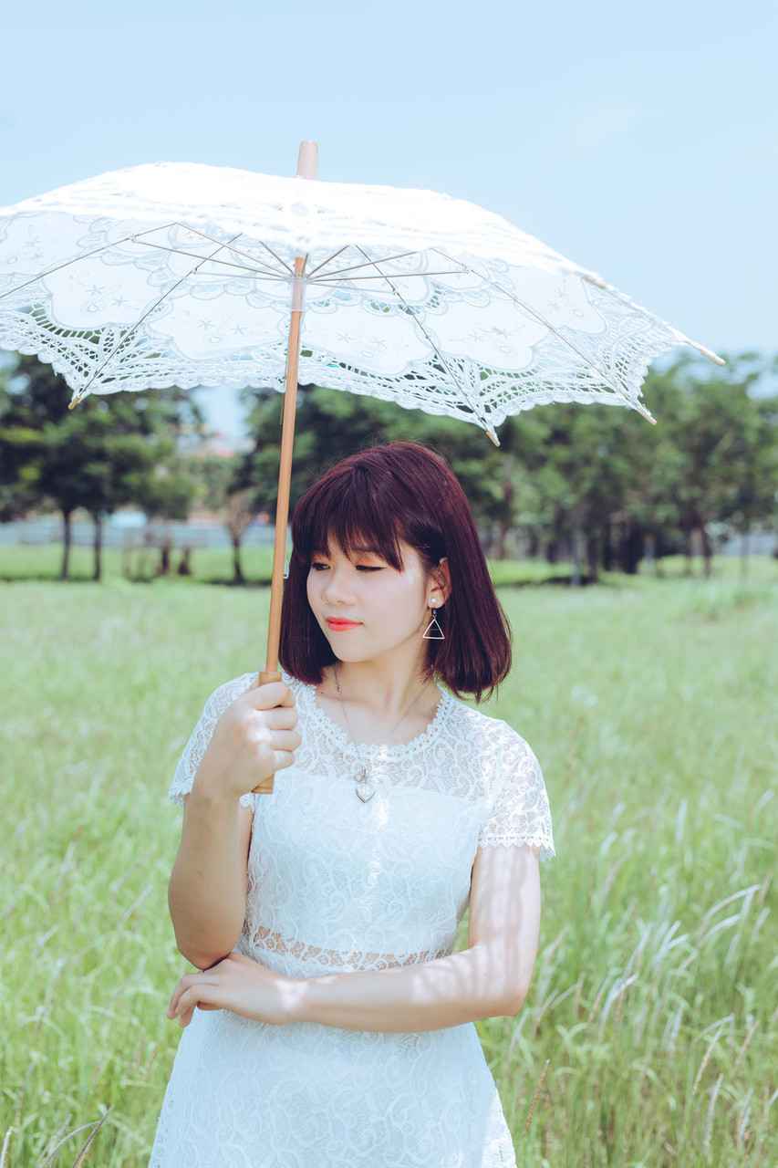 Beautiful Asian Models In White Dresses Pose In Meadow - Gallery Information