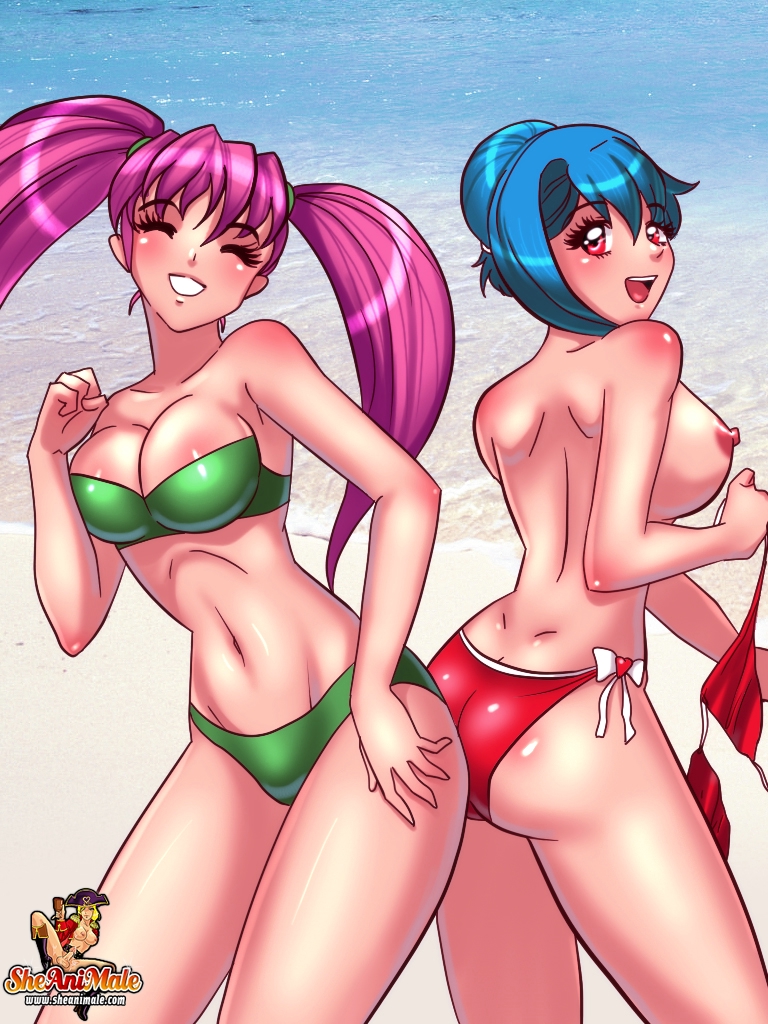 Busty anime shemale babes get their tight asses pounded by cute boys on a sunny beach in this kinky cartoon shemale gallery.
