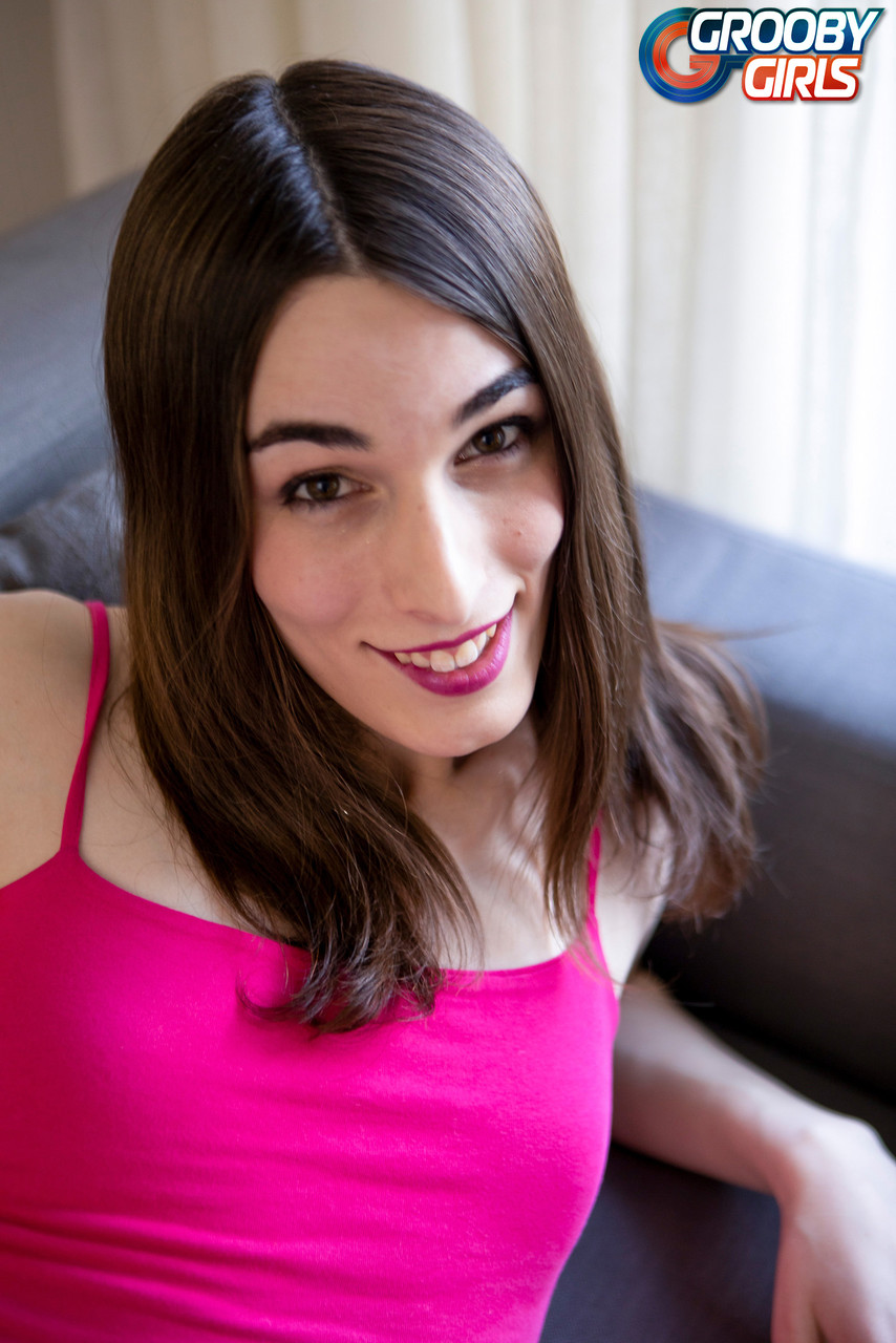 Skinny trans cutie Natasha Swift strips her panties to flaunt small tits, tight shemale ass and cute feet in exclusive Grooby Girls gallery.