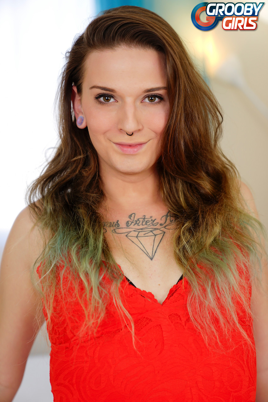 Jenna Creed strips nude on Grooby Girls, flaunting her shemale curves, stiff erection, tight ass, and sexy panties in this sissy-approved photo set.