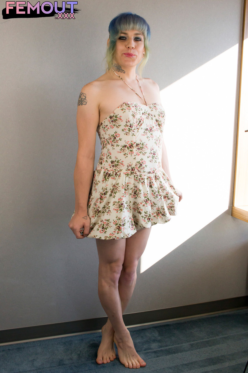 Mature shemale Emmy Jagger teases with her big ass and tiny dick, showing off small cock, feet, and huge erection in hot solo gallery.