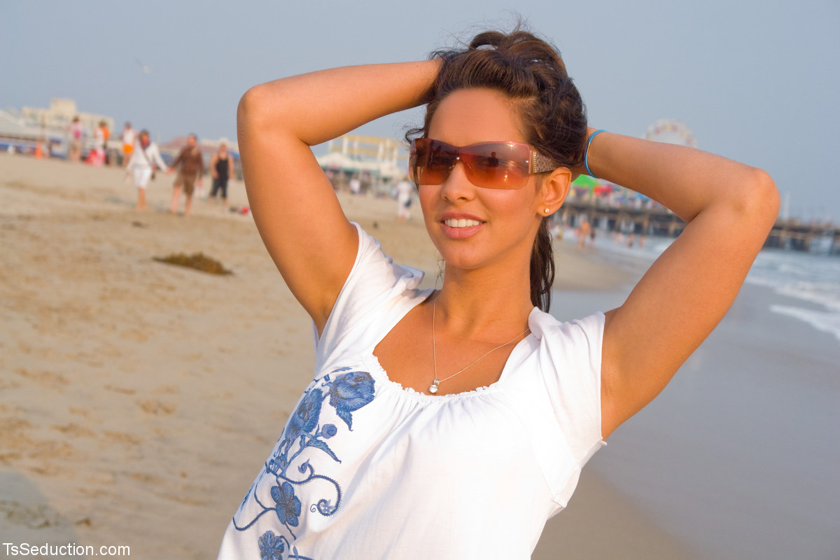 Watch sultry TS beauties Ariel Everitts, Devin and Diezel strip naked outdoors, flaunting ebony and Latina curves in tiny bikinis for the ultimate MILF shemale seduction.