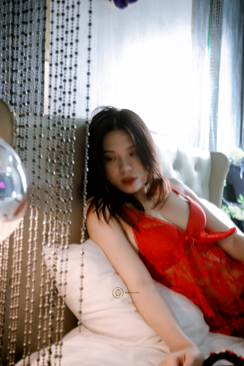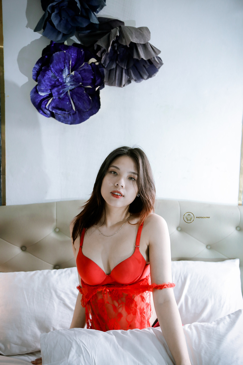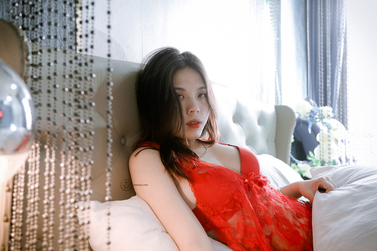 Beautiful Asian Babe Flaunts Her Tits In Sexy Red Lingerie On Her Bed - Gallery Information