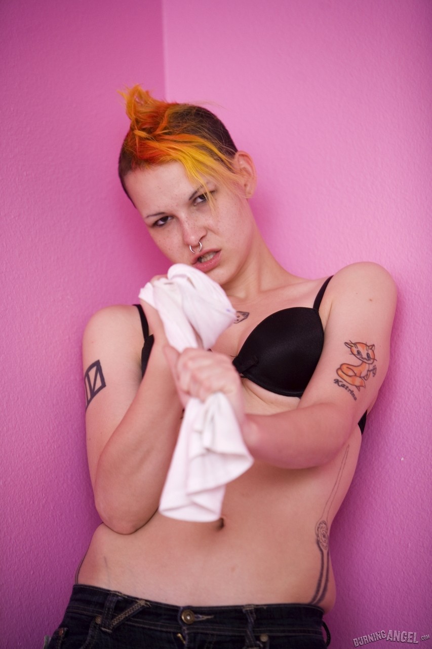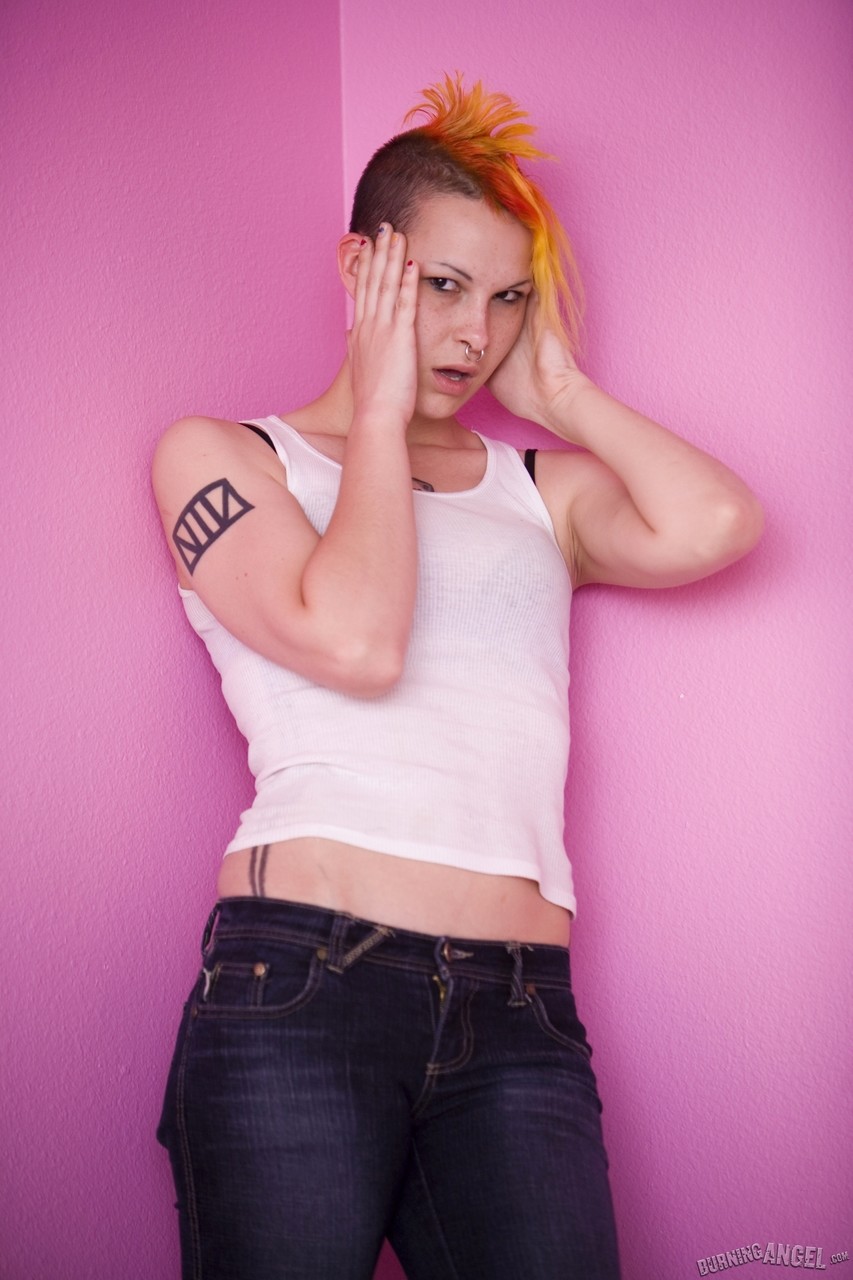 Orange Mohawked Chapel Shows Tattooed Tits And Spreads Her Ass
