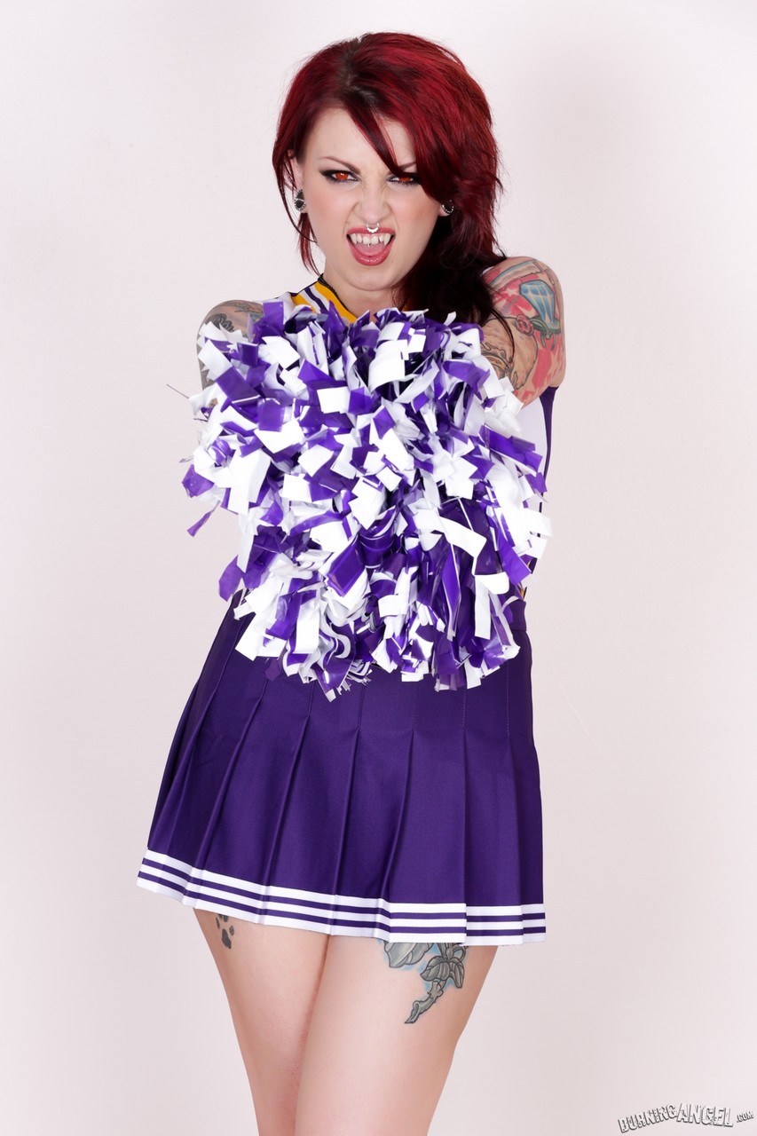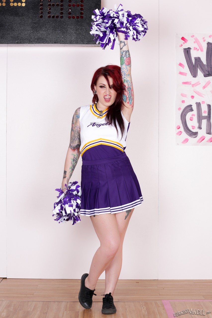 Tattooed Cheerleader Draven Star Strips Uniform And Poses Seductively - Gallery Information
