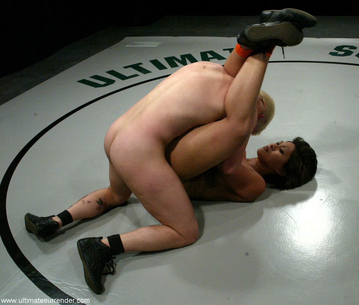 DragonLily vs Syd Blakovich in sweaty nude wrestling, petite Asian MILF pinned, bound, and dominated on gym mat—fit ass, real BDSM surrender, raw amateur sports porn.