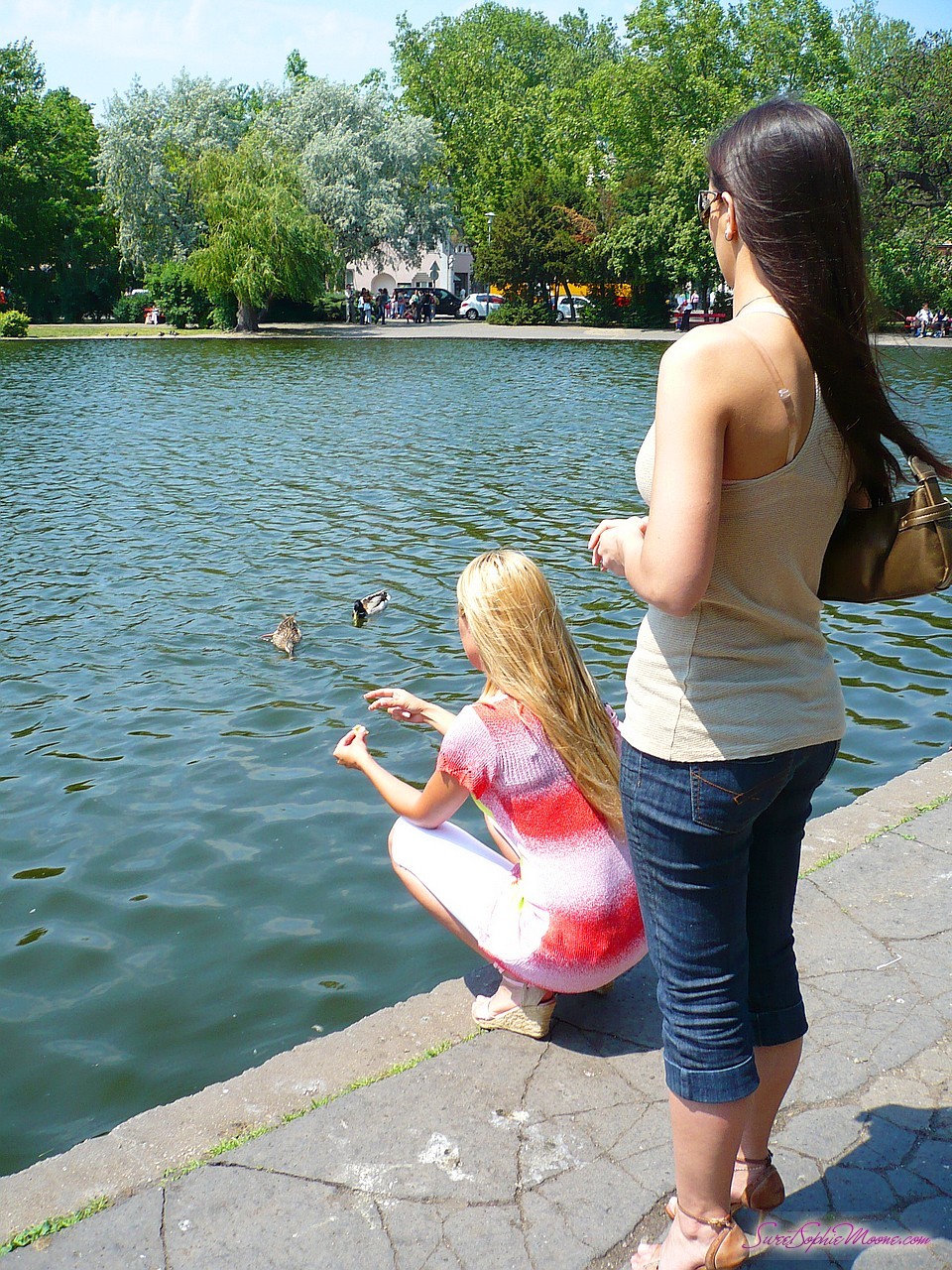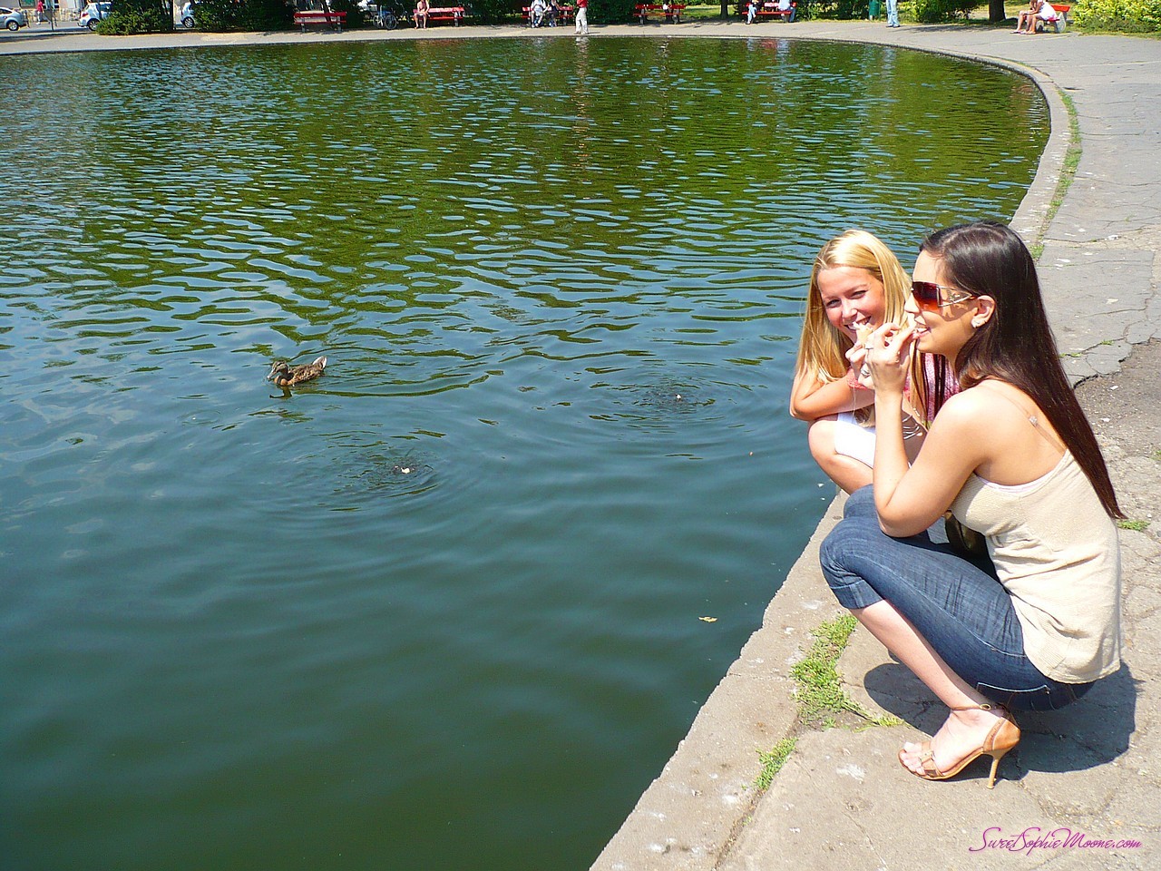 Nerdy MILF and teen lesbians Sophie Moone & Eve Angel heat up outdoors in glasses, shorts and clothes, dripping Hungarian blonde-brunette Euro lust.